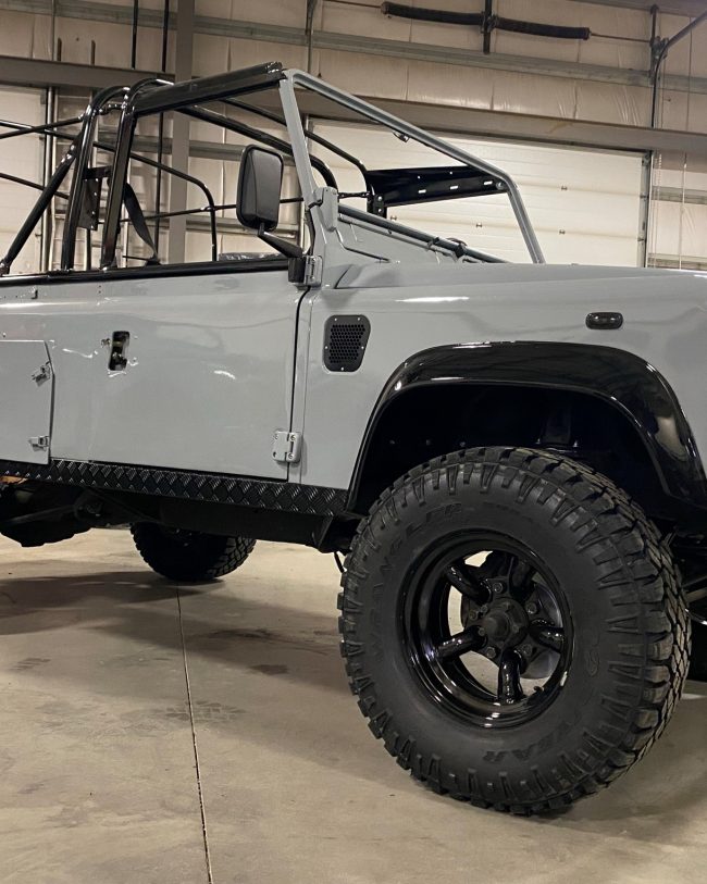 Introducing our entensively restored Land Rover Defender 130 that is ready for camping or Overlanding. This Classic beauty boasts a new Richards galvanized chassis, along with new brakes and new 4 Stage Adjustable suspension for enhanced performance on and offroad. Powered by a rebuilt 300tdi Engine, New Ashcroft R380 Transmission and new Ashcroft Transfer Case, it has all the power. We stripped it down and added new Keswick Green paint inside and out, new Black Hingles, Chequer Plating and a new Front Grill and Headlight Surrounds make for an amzing look. For protection, we added a Safety Device 4 Point Front Roll Cage, Black Rock Sliders with Side Steps and a Terrafirma Tubular front Winch Bumper. Equipped with 16″ Wolf Rims and new 32″ Goodyear Duratrac Tires, she commands the road with confidence and style.